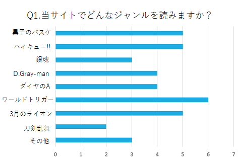 ワートリがここ最近更新が多かったので、票も多く頂きました! 3月のライオンやDグレは長編を置いてある効果かしら、と思います。